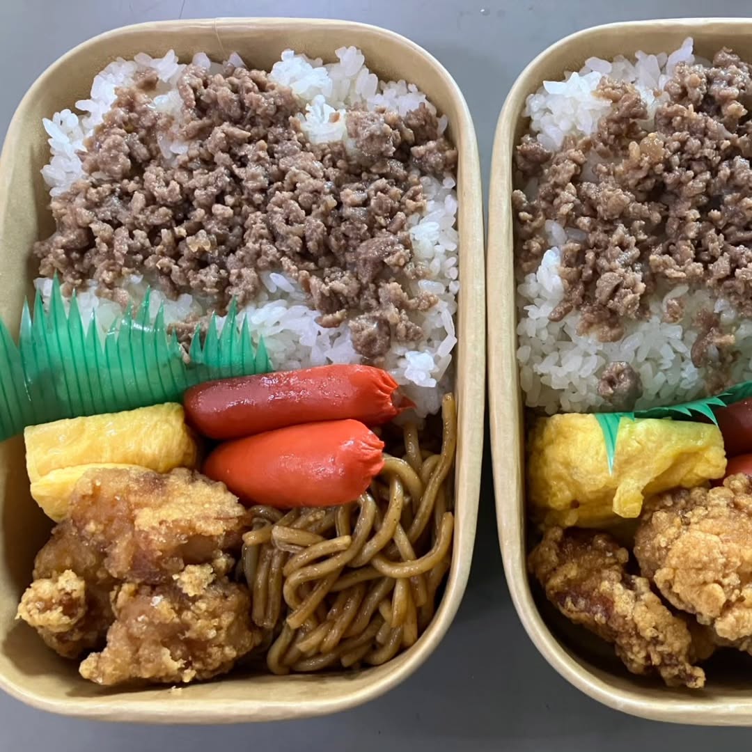 #リクエストにお応えしました子供会の遠足弁当ですそぼろご飯、唐揚げ、玉子焼き、ウインナー、焼きそばと大好きな物をリクエスト頂きました。彩りは茶色が中心で💦でも、茶色のは美味しいものが多い(^^)2度、試作を作りご意見を頂きました。保護者の方が下見にも弁当を持っていかれ試して頂きました。子供達に対する愛♥が溢れている子供会様でした。またのご注文お待ちしております。名古屋港水族館🐟️楽しんできてください#岡崎市#岡崎お弁当#岡崎市お弁当#お弁当配達#お弁当#お弁当のたつみ#配達無料#配達#今日も岡崎#社食#岡崎大門#ご褒美弁当#子供会#遠足